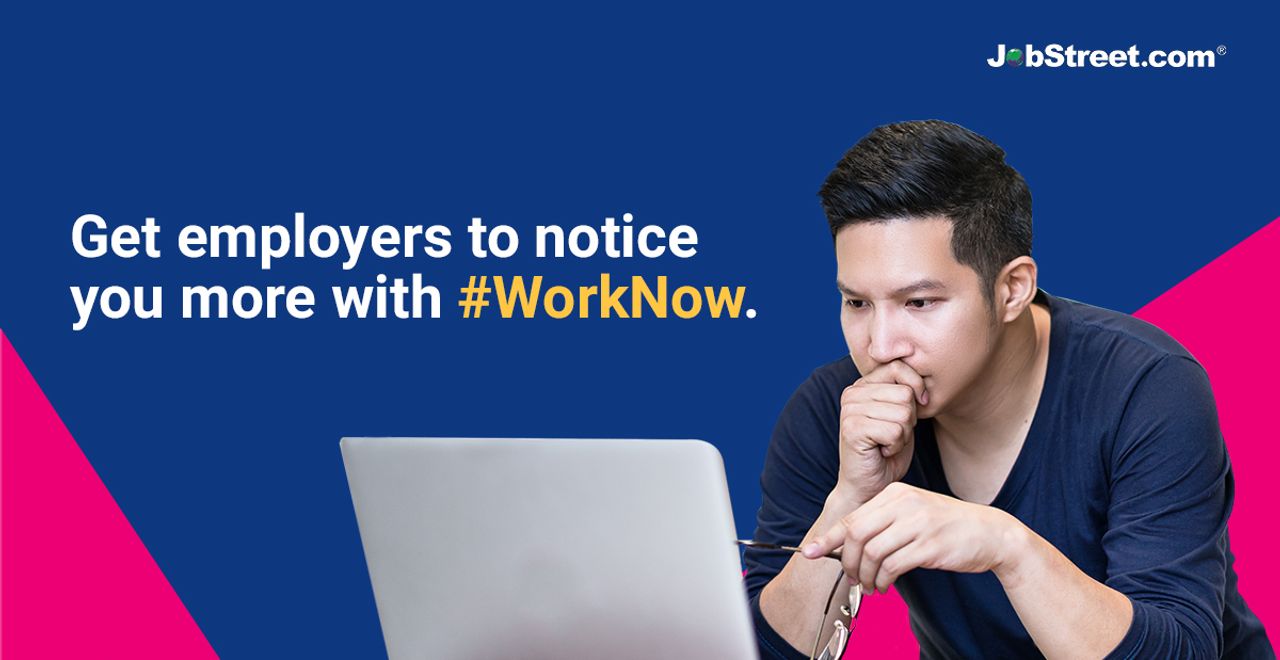 Make yourself more visible by updating your profile on Jobstreet with the tag #WorkNow. Employers with urgent recruiting requirements can notice you easier when they look for applicants who are eligible for #WorkNow.