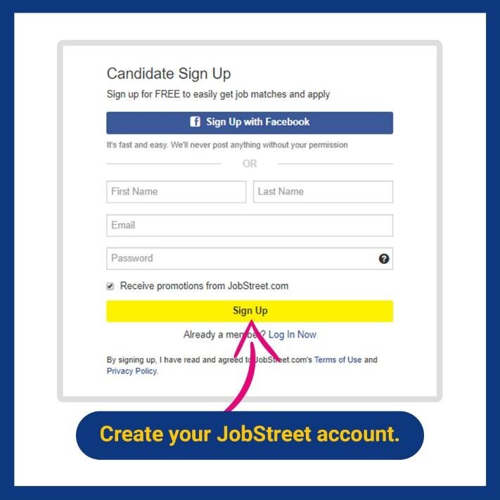 1. You can create a Jobstreetaccount and follow the easy steps below.