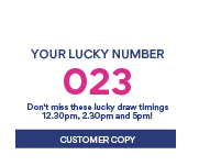 Lucky draw will be held daily at 12.30 PM, 2.30PM and 5.00PM